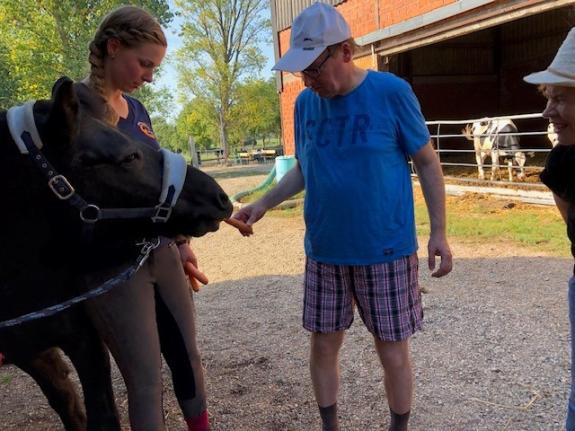 Zunächst fand eine kleine Rundführung über den Hof statt. Anschließend durfte Therapiepony Tinna gestreichelt, geputzt, geführt und gefüttert werden. Ein Snack mit Getränken, Obst und Plätzchen rundete den Nachmittag ab. Unsere Bewohner*innen bekamen ein bisschen Glück, in Form eines Hufeisens, mit nach Hause.