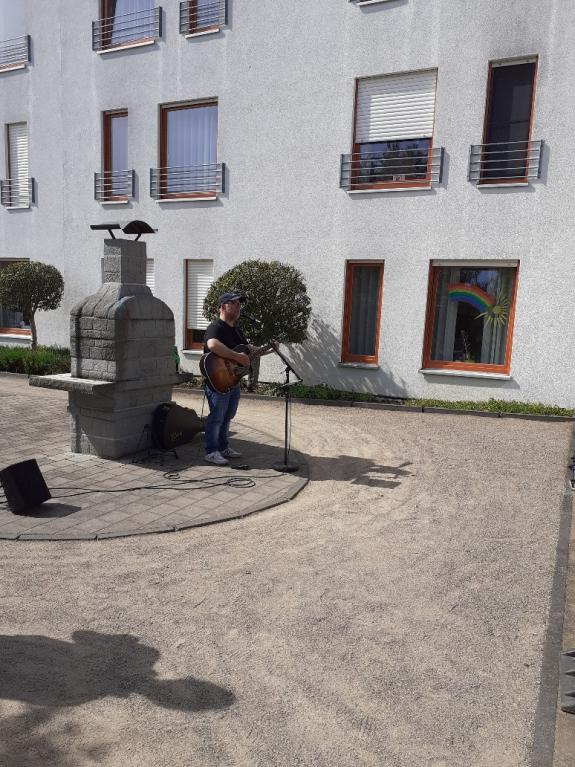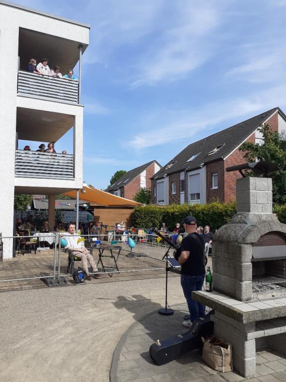 Danach kamen einige Familienangehörige, sein Freizeitbetreuer und Mitarbeiter*innen der Lebenshilfe vorbei, die den Auftritt vom Sänger und Songwriter Lou Dynia schon gespannt erwarteten.