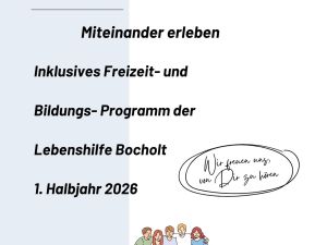 Gemeinsam erleben, gemeinsam wachsen – unser neues Programm bietet vielfältige Aktivitäten für Menschen mit und ohne Behinderung. Von kreativen Workshops über Sport- und Bewegungsangebote bis hin zu spannenden Ausflügen ist für alle etwas dabei!
