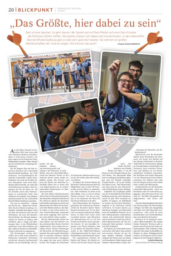 Über die Erfolgsgeschichte der inklusiven Dartmannschaft der Bocholter Lebenshilfe berichtet jetzt sogar die Lebenshilfe Zeitung: