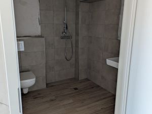 Jedes Apartment hat ein separates Badezimmer mit Dusche sowie einen separaten Wasseranschluss