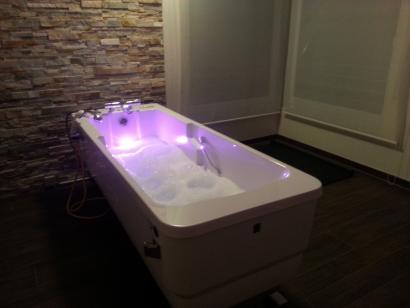 Zur besonderen Entspannung ist eine Badewanne im Haus mit Luftperlbad- und Lichtsystem. Dazu verfügt die Wanne über ein MP3-Sound-System, sodass man beim Baden Musik hören kann